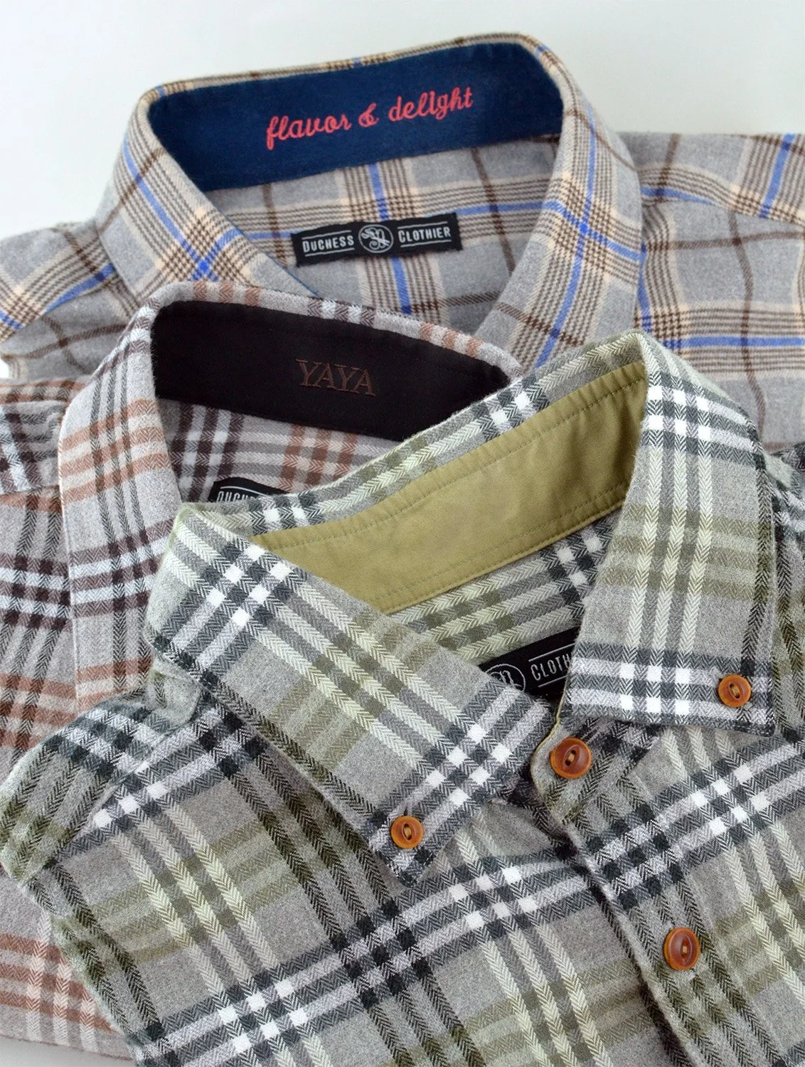 Shop DUCHESS Online Gift Certificates - Pre-Sale Offers - Showroom Samples Categories: Select a Category Pre-Sale Now Available Pre-Sale Now Available Quick View Fall Flannel Shirt Pre-Sale Sale Price: $200.00 Original Price: $400.00 Sale Deep Forest Plaid (Smoke Gray/Olive Green/Black/White) Classic Slate Plaid (Gray/Espresso/Chestnut/White) Heritage Plaid (Gray/Royal Blue/Chocolate/Cream) Order Now Added!